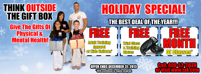 Make this the last year you make a failed New Year’s Resolution. Sign up today for Tiger Schulmann’s FREE, FREE, FREE Holiday Special!
