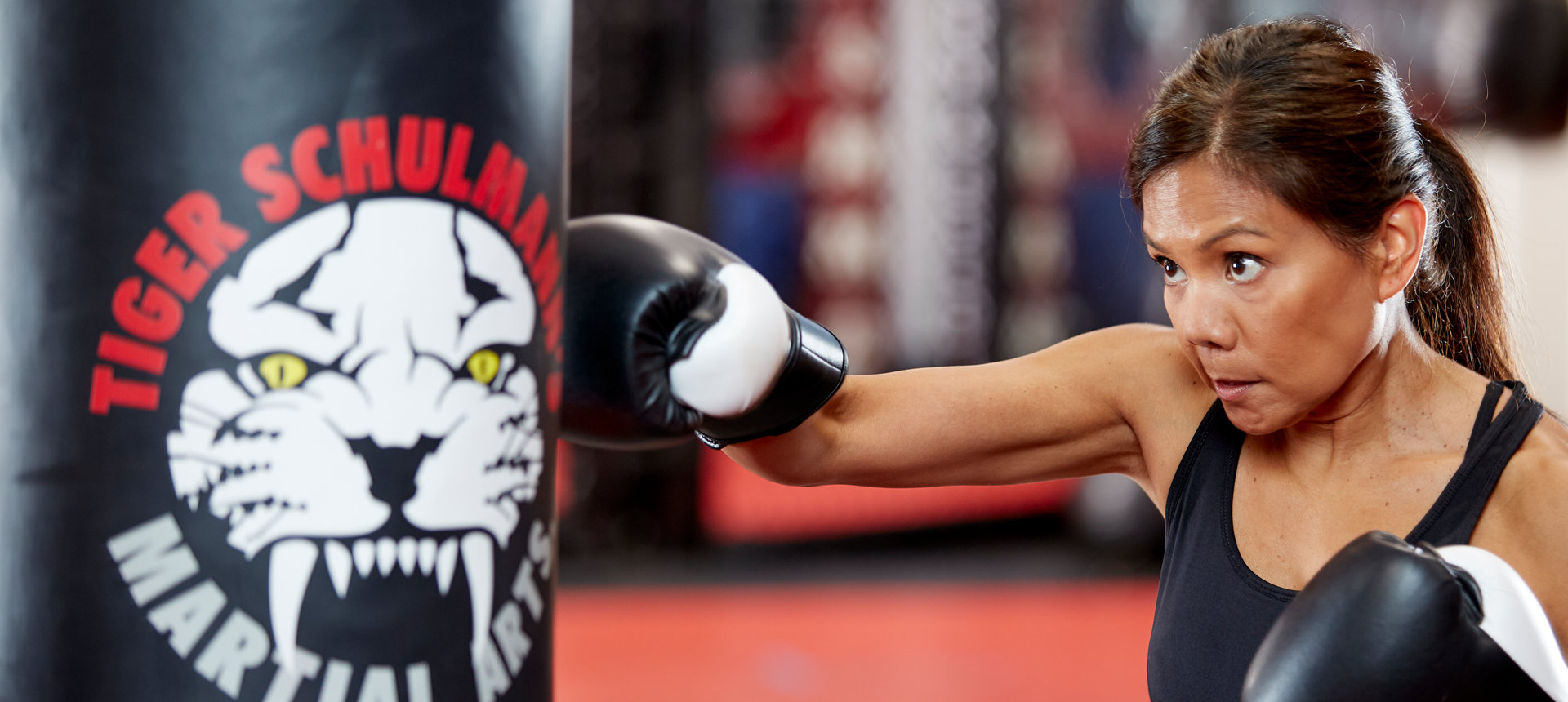 Most people can’t stick with the gym. 95% quit after just one month. It’s boring and there are not enough reasons to keep you consistent. With Tiger Schulmann’s, you get our 3 dimensional workout which includes total body results + learning the life skill of self-defense and on top of that, our classes are intriguing and fun! Results, fun and self-defense make it easy to stay consistent and consistency is the key to success!